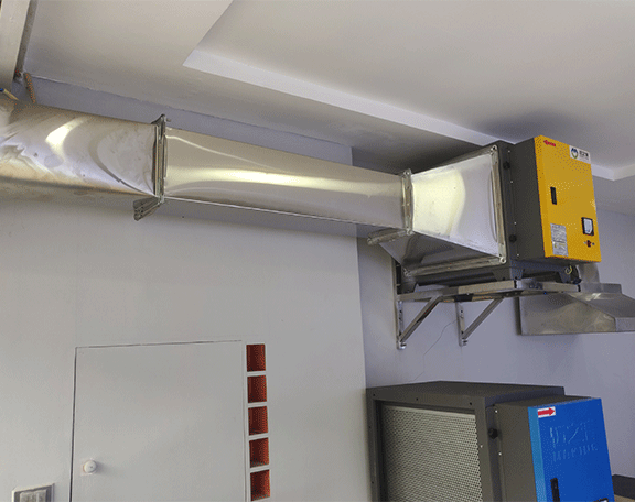 项目介绍:此次项目是给一家重庆当地的酒店进行厨房油烟进化器的安装,该酒店由于地理位置是商业街,人群聚集地,饭点时刻人流量比较大,所以考虑到这个因素我司对安装施工人员进行了一定的要求,安装的位置必须要合理不允许出错要能有效的解决酒店厨房油烟的问题,且施工时要尽可能的降低噪音以免影响大家用餐及工作。为了避免串烟问题,放弃原有烟道,直接在窗户上开孔排烟。