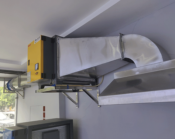 项目介绍:该项目是一个新开的中餐馆的油烟净化器安装,好色先生视频网站采用的是主次式的烟道截面是两个并排的矩形管道,烟管道也是笔直地贯穿各楼层。施工者一般会把这个烟道设置在住所每层中,同样也会有一个用于衔接排油烟机和烟道的进风口。这样主烟道和次烟就能够道在进风口间隔处相汇。经过抽油烟机将烟气先推入次烟道中,利用抽油烟机推进力以及油烟温度的上浮力,使得油烟上升一段间隔后能再次进入主烟道从而排出屋面。